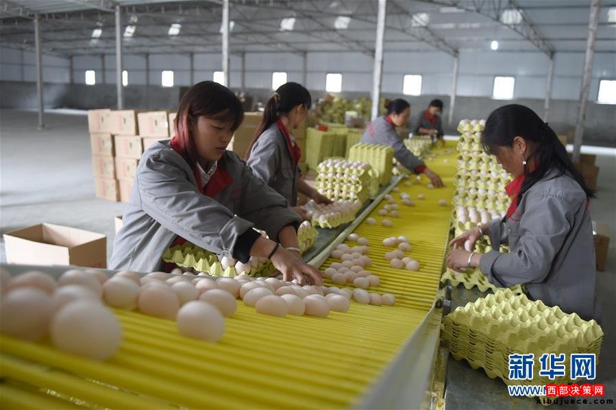 在貴州省畢節(jié)市七星關(guān)區(qū)五里坪村,當(dāng)?shù)剞r(nóng)戶在一個(gè)屬于精準(zhǔn)扶貧項(xiàng)目的養(yǎng)雞場(chǎng)內(nèi)分揀雞蛋(2015年11月15日攝)。畢節(jié)市自2014年開始“私人訂制”式精準(zhǔn)扶貧工作,根據(jù)當(dāng)?shù)刎毨魧?shí)際情況為其制定扶貧方案,扶貧變“輸血”為“造血”。黨的十八大以來,以習(xí)近平同志為總書記的黨中央高瞻遠(yuǎn)矚、深謀遠(yuǎn)慮,以高度的政治感、使命感和責(zé)任感,把扶貧開發(fā)工作提升至治國(guó)理政新高度,廣泛凝聚社會(huì)各界力量,推進(jìn)實(shí)施精準(zhǔn)扶貧方略,為到2020年全面建成小康社會(huì)奠定堅(jiān)實(shí)基礎(chǔ)。按照中央部署,通過產(chǎn)業(yè)扶持、轉(zhuǎn)移就業(yè)、易地搬遷、政策兜底等方式,到2020年將實(shí)現(xiàn)7017萬農(nóng)村貧困人口脫貧目標(biāo)。新華社記者 潘昱龍 攝