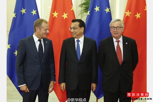 新華網(wǎng)北京7月12日電國(guó)務(wù)院總理李克強(qiáng)12日下午與歐洲理事會(huì)主席圖斯克、歐盟委員會(huì)主席容克共同主持第十八次中國(guó)歐盟領(lǐng)導(dǎo)人會(huì)晤。雙方就鞏固中歐政治互信、穩(wěn)步落實(shí)合作共識(shí)、加強(qiáng)國(guó)際和地區(qū)事務(wù)中的溝通與協(xié)調(diào)等深入交換意見(jiàn)。(據(jù)新華社“新華視點(diǎn)”微博報(bào)道)