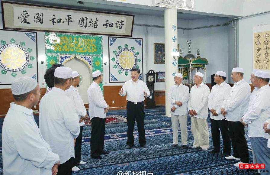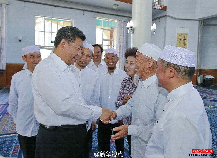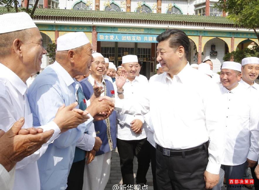 新華網(wǎng)北京7月19日電習(xí)近平總書記19日上午來到寧夏回族自治區(qū)銀川市新城清真寺了解宗教活動開展情況。在禮拜大殿,習(xí)近平與寧夏伊斯蘭教界人士親切交流,通過他們向廣大穆斯林群眾致以親切問候和良好祝愿。習(xí)近平說,我國的各民族和宗教是在5000多年的文明史中孕育發(fā)展起來的,只有落地生根才能生生不息。習(xí)近平希望大家繼續(xù)發(fā)揚愛國愛教傳統(tǒng),在脫貧致富奔小康的道路上發(fā)揮積極作用。在場的伊斯蘭教界人士表示,將認真貫徹落實全國宗教工作會議精神,既念好古蘭經(jīng),又念好致富經(jīng),為國家發(fā)展?fàn)I造和諧的環(huán)境。(文字:新華社記者霍小光,攝影:新華社記者鞠鵬、李濤據(jù)新華社“新華視點”微博報道)