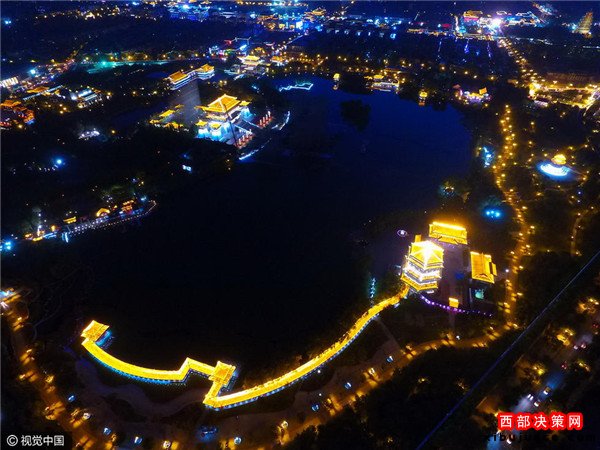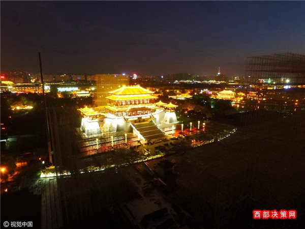 2016年08月30日,陜西省西安市,中央電視臺(tái)中秋晚會(huì)西安大唐芙蓉園分會(huì)場(chǎng)正在緊張布置中。記者從利用無人機(jī),分別航拍到大唐芙蓉園白天與夜晚的壯美風(fēng)景,如同一幅美麗畫卷,等待著中秋佳節(jié)的到來。