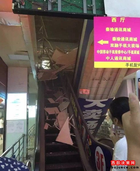 西部決策網(wǎng)訊(通訊員 展?。?nbsp;今天中午1點(diǎn)左右,西安市西華門(mén)海星智能廣場(chǎng)四樓賣(mài)場(chǎng)電梯頂?shù)蹴斖蝗幻撀?。商?hù)們說(shuō),房頂是木質(zhì)結(jié)構(gòu),坍塌毫無(wú)預(yù)兆。事故所幸暫時(shí)沒(méi)有人員受傷!