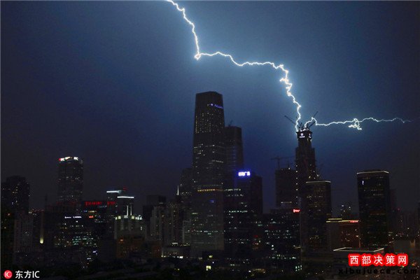 2016年9月7日,中國(guó)北京,夜幕降臨,一道道打雷閃電劃破京城夜空,觸目驚心。據(jù)北京市氣象局官方微博消息,北京市氣象臺(tái)7日17時(shí)45分發(fā)布雷電黃色預(yù)警信號(hào)。