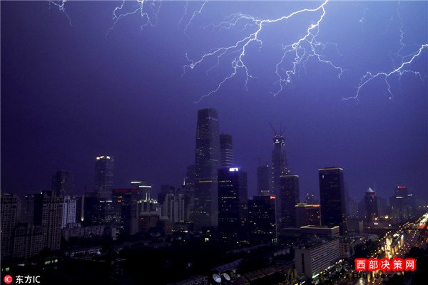 雷雨突如其來(lái)光顧北京城區(qū) 閃電劃破天際