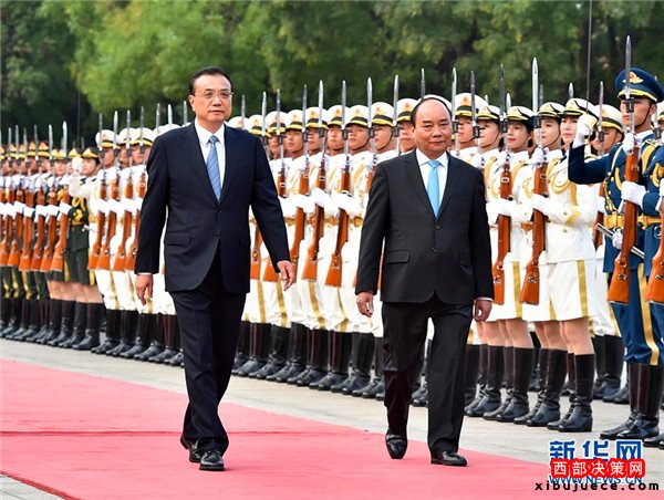 9月12日,國務(wù)院總理李克強在北京人民大會堂同來華進行正式訪問的越南總理阮春福舉行會談。