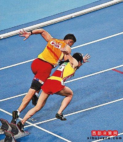 當(dāng)?shù)貢r(shí)間9月16日,在里約殘奧會(huì)田徑比賽女子400米T11級決賽中,中國隊(duì)選手劉翠青和領(lǐng)跑員徐冬林以56秒71的成績奪得冠軍。圖為劉翠青(右)和徐冬林在比賽中起跑。