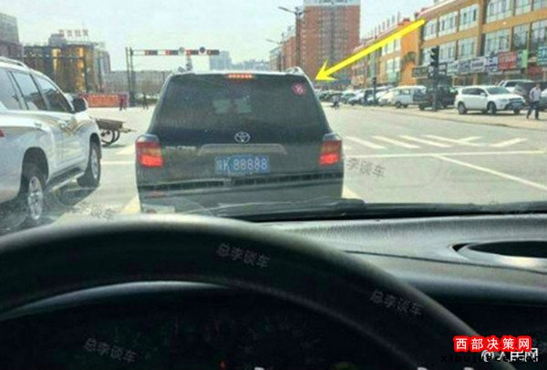 網(wǎng)友提供的照片顯示,懸掛“陜K88888”的車(chē)輛涉及奔馳、本田、豐田以及獵豹汽車(chē)4個(gè)車(chē)型、5輛車(chē),其中豐田漢蘭達(dá)的后車(chē)窗玻璃上還張貼著“1”和“8”的字樣,分別位于車(chē)窗的左上角和右上角。