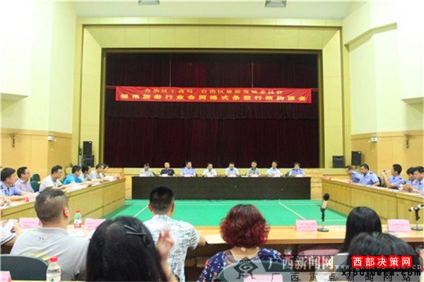 為進(jìn)一步依法維護(hù)旅游經(jīng)營(yíng)企業(yè)及旅游消費(fèi)者合法權(quán)益,積極發(fā)揮部門(mén)間的監(jiān)管合力,提高旅游市場(chǎng)監(jiān)管效能,提升企業(yè)誠(chéng)信守法意識(shí),維護(hù)良好的旅游市場(chǎng)秩序,促進(jìn)廣西旅游產(chǎn)業(yè)健康發(fā)展,9月28日,規(guī)范旅游行業(yè)合同格式條款行政約談會(huì)在南寧召開(kāi)。