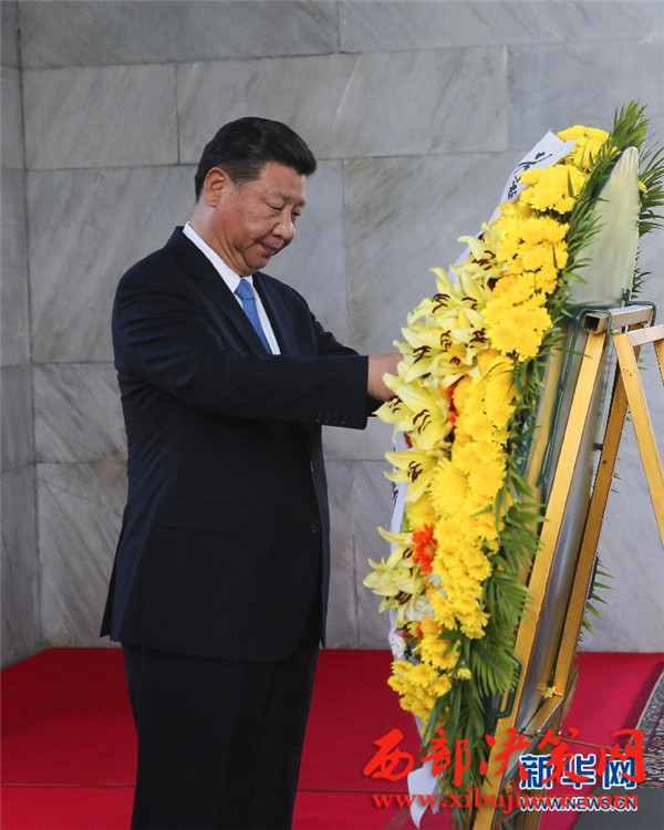 會談前,習(xí)近平向柬埔寨獨立紀念碑獻花圈。