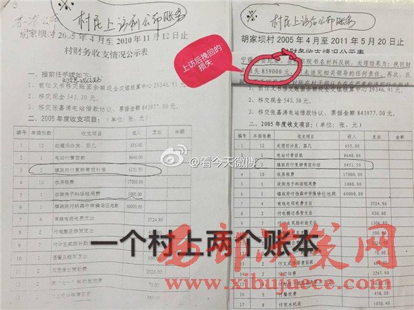 據(jù)實名舉報材料了解,早在2011年5月16日,經(jīng)群眾上訪,寧強(qiáng)縣縣紀(jì)委、縣檢察院就對黨支部書記劉全忠作出過處理,挽回財產(chǎn)損失859000元,但并未追究其法律責(zé)任。從胡家壩村公布的賬目來看,村民上訪前和上訪后僅“鎮(zhèn)政府付復(fù)耕青苗補(bǔ)償”單這一款項就有300元的出入。一個村子竟然存在兩本財政收支賬目,到底哪本賬才是胡家壩村真正的財政收支賬目呢?為什么要做兩本性質(zhì)相同的賬?會不會該村還有第三本賬?