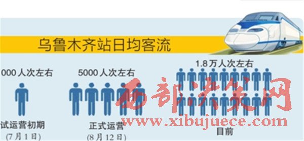 烏魯木齊站統(tǒng)計數(shù)據(jù)顯示,隨著始發(fā)終到列車增多、周邊公交線路增多以及知曉度提升,該站日均旅客發(fā)送量也由試運(yùn)營初期的1000人次左右,到8月12日正式運(yùn)營的5000人次左右,再穩(wěn)步增加到目前的1.8萬人次左右。