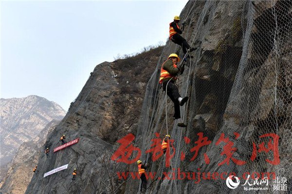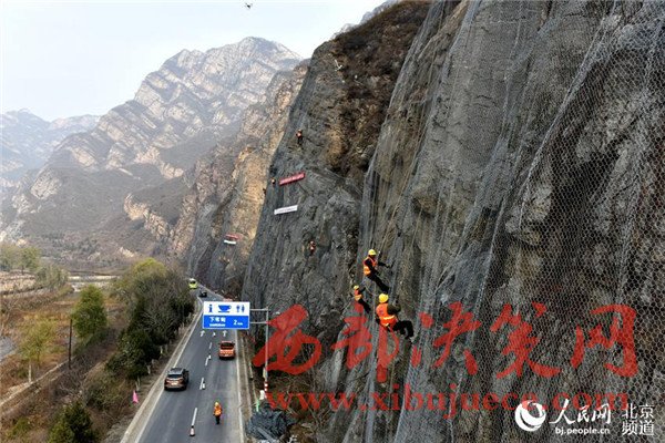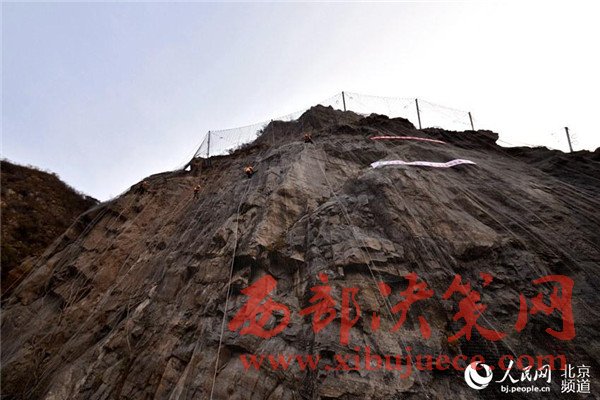 北京大山里的蜘蛛人網住懸崖保行車安全