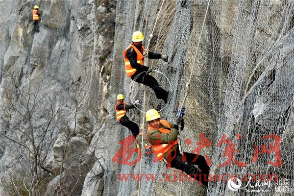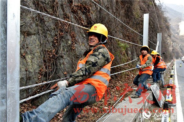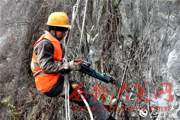 在重大地質災害隱患點治理現(xiàn)場,記者發(fā)現(xiàn)了一群“大山里的蜘蛛人”。他們在50米高的懸崖上作業(yè),用鐵絲網將大山“網住”,防止懸崖上的石塊掉落,保證國道上來往車輛的行車安全。記者注意到,整個作業(yè)期間,他們都用一根安全繩系住身體,吊在懸崖邊。初冬的北京寒風已經有些刺骨,在山區(qū)更是比市區(qū)低了幾度,而這些“蜘蛛人”也沒有進行特別的保暖工作。