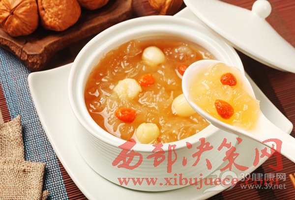 將適量枸杞和銀耳放入鍋中,加水煎成濃汁,再倒入適量蜂蜜,煎5分鐘即成,溫開水兌服,隔日1次,有助于改善面色萎黃、失眠等癥狀。