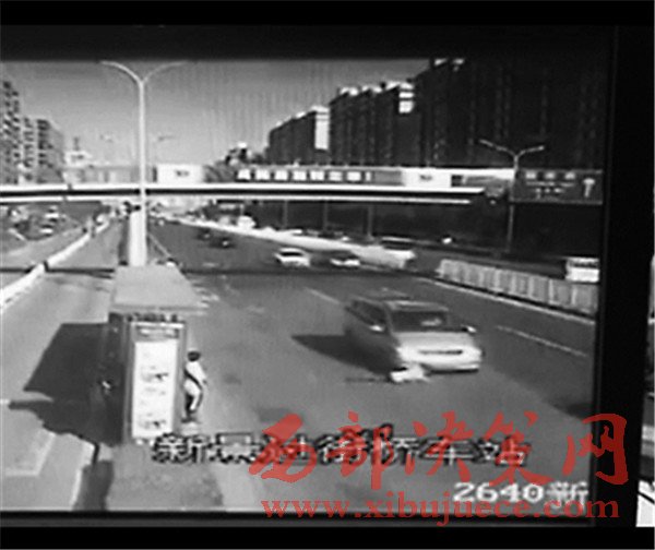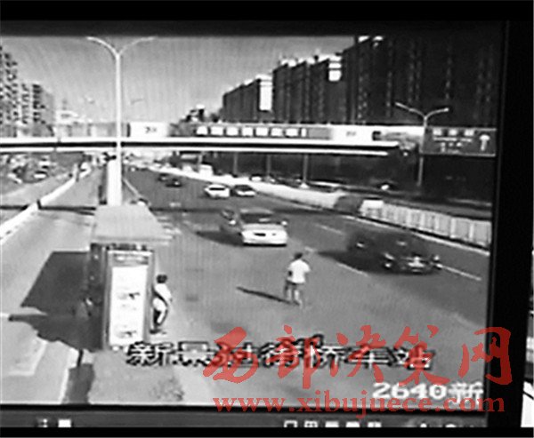 這段不到5秒鐘的視頻翻拍自事發(fā)現(xiàn)場的一個監(jiān)控攝像頭,視頻正對的方向是一個公交站臺和機(jī)動車道。