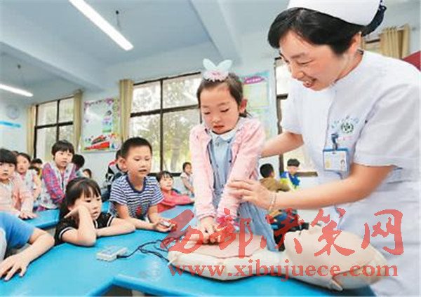 5月13日,湖北省襄陽(yáng)市醫(yī)護(hù)志愿者為小學(xué)生上急救知識(shí)課。