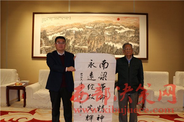 西部決策網(wǎng)訊(帥華鋒  杜杰  通訊員 趙高銪)11月21日,原全國政協(xié)常委、國家林業(yè)部常務副部長劉廣運,國家林業(yè)局老干局副局長、中國林業(yè)書法家協(xié)會副秘書長王德宗,人民日報海外版書畫藝術部主任助理、人民書畫藝術網(wǎng)外聯(lián)部副主任陳厚學一行,在慶陽市林業(yè)局、華池縣人民政府副縣長池軍以及南梁紅色景區(qū)建設管理局辦公室主任張全鈺、南梁革命紀念館館長聶明靜的親切陪同下,踏上陜甘邊革命根據(jù)地“紅色南梁”這片革命的熱土。