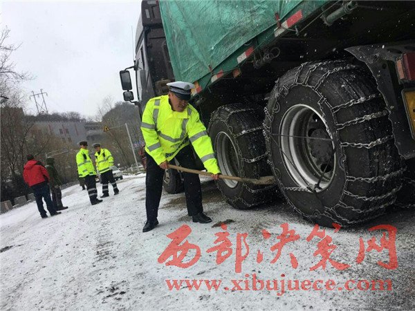 21日夜間,20余輛半掛車進(jìn)山,行至冰雪路面無法前行,滯留在路邊,導(dǎo)致道路擁堵。為進(jìn)一步加強(qiáng)路面管控,渭濱大隊迅速啟動《冰、雪、雨、霧自然災(zāi)害等特殊氣候條件下道路交通安全保障應(yīng)急處置預(yù)案》,從22日早上7點開始,對四軸以上半掛車進(jìn)行交通管制。同時,渭濱交警大隊,鳳縣交警大隊黃牛埔中隊迅速聯(lián)系路政部門,對積雪路段采取拋灑融雪劑、防滑沙等措施。對部分滯留車輛大隊民警已第一時間趕赴現(xiàn)場進(jìn)行疏導(dǎo),并送去了熱水和食品,并從秦嶺兩端。