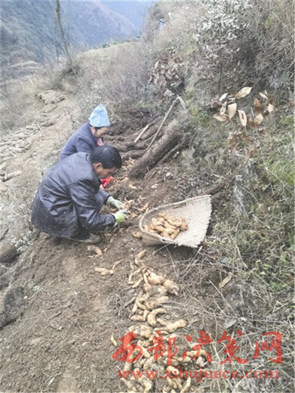 11月28日下午,記者找到潘金蓮和丈夫王德忠時,夫妻倆正在地里挖天麻,他們在地邊生了一堆火,男人挖,女人撿,手凍著了,就蹲下來烤會火。潘金蓮40歲,王德忠44歲,夫妻倆和氣、淳樸,一說話就笑起來。“天麻哪貴嘛,種得不多,大概能挖300斤,大的1斤能賣個10元左右。”王德忠蹲下來,歇一口氣。
