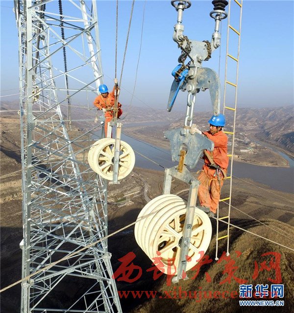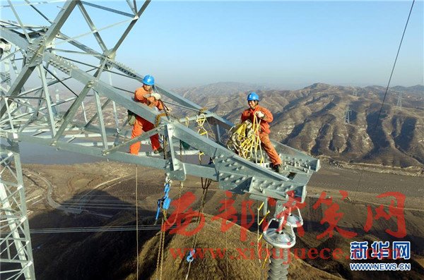 11月30日,施工人員在投放作業(yè)軟梯。當日,正在施工的“陜電外送”特高壓工程——1000千伏榆(林)橫(山)至濰坊特高壓交流工程,在陜西省清澗縣與山西省石樓縣之間成功跨越黃河。作為落實國家大氣污染防治行動計劃重點建設的12條輸電通道之一,1000千伏榆(林)橫(山)至濰坊特高壓交流工程是首個“陜電外送”的特高壓大通道,實施后將帶動陜北煤炭高效清潔利用,減輕煤炭運輸壓力,助力陜西能源產(chǎn)業(yè)轉型升級,并有效緩解京津冀魯?shù)貐^(qū)電力供應緊張和大氣污染。