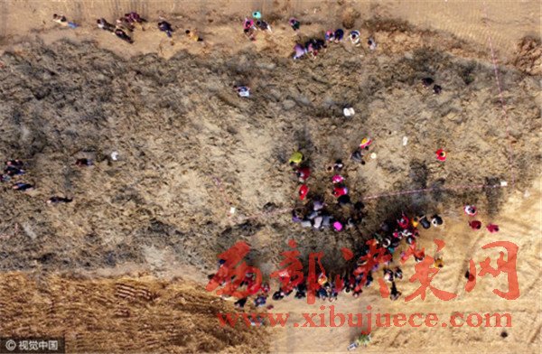 當(dāng)天中午12點(diǎn),中牟縣警方、文物所抵達(dá)現(xiàn)場(chǎng),拉起了警戒線,對(duì)“挖寶”村民進(jìn)行了疏散。