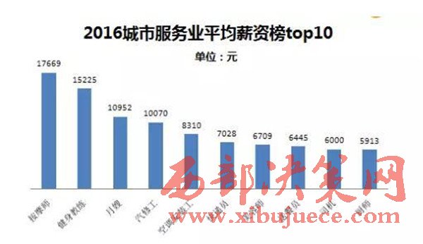 數(shù)據(jù)顯示,2016年前三季度,按摩師、健身教練的薪資處于漲幅前列。以上海為例,按摩師的平均薪資達(dá)到17669元,同比去年漲幅為26.5%。