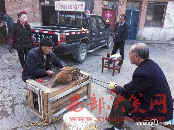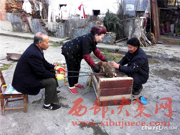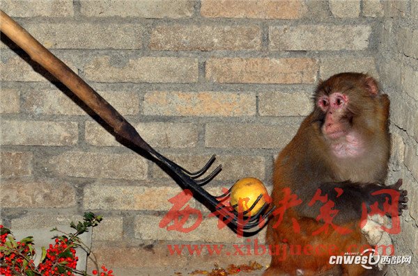 2016年12月8日,在寧強(qiáng)縣野生動(dòng)植物保護(hù)站的工作人員耐心“勸慰”下,這只獼猴終于轉(zhuǎn)過頭來看著鐵叉上的蘋果。