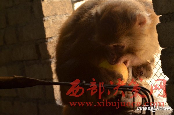 2016年12月8日,這只獼猴終于同意啃食寧強(qiáng)縣野生動(dòng)植物保護(hù)站工作人員給它喂食的蘋果。