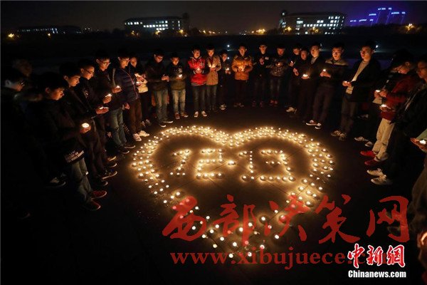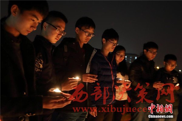 12月12日晚,在第三個國家公祭日前夜,主題為“愿逝者安息,為生者祈福”的燭光祭活動在南京東南大學(xué)九龍湖校區(qū)內(nèi)舉行,來自該校機(jī)械工程學(xué)院的大學(xué)生們點燃蠟燭,擺放成心形和1213字樣,為南京大屠殺死難者集體默哀,寄托哀思。