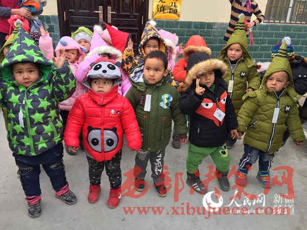 12月12日,新疆溫宿縣吐木秀克鎮(zhèn)尤喀克斯日木村應(yīng)急雙語幼兒園里暖意融融。32名小朋友穿上了遠(yuǎn)在千里之外的浙江舟山市叔叔阿姨們寄來的冬衣褲。