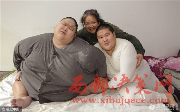 老二的生活基本能夠自理,老大張航郡卻很愁人。當日9時,老大剛剛早起。兩米寬的床,他占據了—大半。張航郡的體重至少有500斤,沒有—個秤能準確地量出他的體重。腰圍九尺多,不敢說是全國最胖的,但在沈陽絕對是第—胖。500多斤,生活中是什么樣的狀態(tài)?記者看到,張航郡家里的東西大部分是特制的。九尺多的腰,哪有賣這個型號衣服的啊?普通的衣服根本不能穿,必須特制。洗臉、上廁所這些生活基本問題都得馬女士幫助才能完成。“別看他22歲了,智力水平—直停留在1歲左右。叫‘媽媽’都是這幾年才學會的。”張航郡與馬女士的交流會用喊的方式,喊些只有馬女士才能聽得懂的語言。