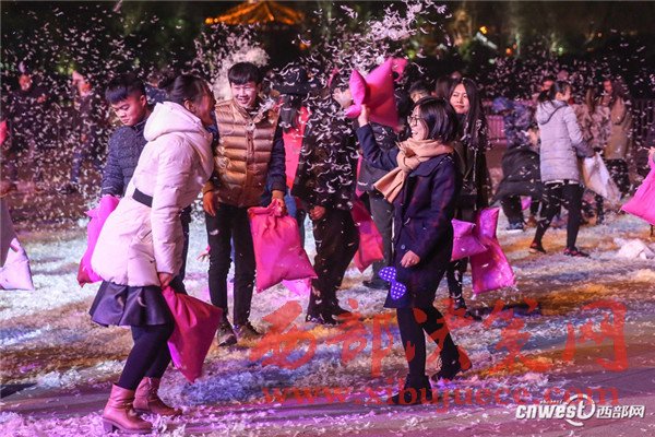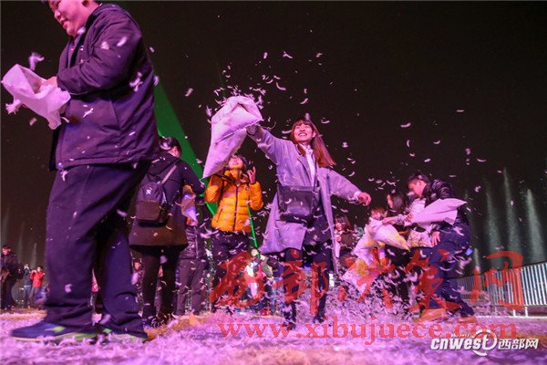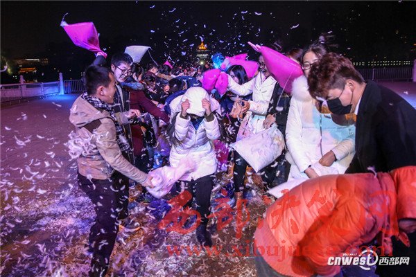 12月24日是西方傳統(tǒng)節(jié)日平安夜,風(fēng)靡全球的“枕頭大戰(zhàn)”在西安大唐芙蓉園舉行,眾多青年男女相聚于此,拋卻煩惱與壓力,火熱“開戰(zhàn)”,歡樂(lè)與羽毛齊飛。