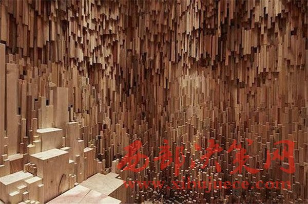 空心這個交互式裝置是藝術家Katie Paterson和建筑家Zeller & Moye的作品。該作品由10000多塊跨越百萬年的木材制成。它們被切成木板,之后雕成鐘乳石的形狀,掛在天花板上,為參觀者聽過獨特的,步行參觀體驗。