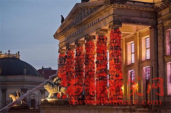 因其激進的藝術而聞名,Ai Wei Wei對社會事件表態(tài)并不陌生。這個#救救航海者系列用1400個明亮的橙色救生衣大膽地覆蓋了德國柏林音樂廳的支柱。此外還有一個掛著標簽的救生艇。這個系列呼吁大家重視尋求庇護的難民。