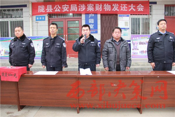 西部決策網(wǎng)訊(帥華鋒 杜杰 通訊員 邢亞洲)12月29日中午,隴縣公安局東南派出所召開贓物發(fā)還大會(huì),為群眾發(fā)還現(xiàn)金44620元,群眾放起了鞭炮送來感謝信和錦旗表示感謝。。