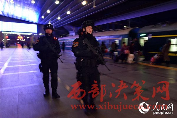 1月13日,站臺上,正在執(zhí)勤的特警。