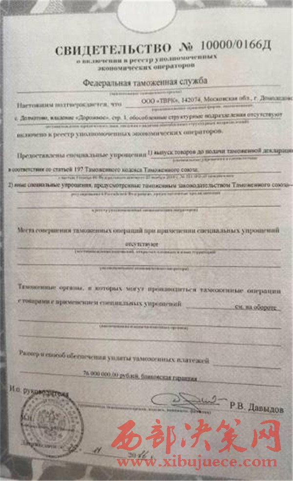 西部決策網(wǎng)訊(王博 通訊員 焦麗)2017年1月13號(hào)北京時(shí)間下午16點(diǎn)莫斯科時(shí)間上午11點(diǎn),跨境電商關(guān)天之窗俄羅斯合伙人平臺(tái)跨境電商中國(guó)購(gòu)創(chuàng)始人關(guān)鑫一行與俄羅斯庫(kù)爾干自治州相關(guān)機(jī)構(gòu)負(fù)責(zé)人米哈伊爾羅維奇,羅馬,薩沙達(dá)成協(xié)議,從中國(guó)陜西省西安港直達(dá)俄羅斯的貨物允許在俄羅斯邊境自治州庫(kù)爾干海關(guān)進(jìn)行清關(guān),莫斯科官方給庫(kù)爾干政府相關(guān)機(jī)構(gòu)的批復(fù)函件中標(biāo)注中國(guó)西安港到達(dá)俄羅斯庫(kù)爾干海關(guān)為全品類清關(guān)。
