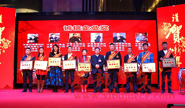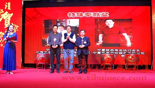 年會上,張海龍會長、李明義執(zhí)行會長一起向2016年新增常務(wù)副會長、副會長、理事授牌;商會黨支部書記、秘書長王惠選宣讀了寧夏陜西商會關(guān)于表彰獎(jiǎng)勵(lì)2016年度特殊奉獻(xiàn)獎(jiǎng)、誠信企業(yè)獎(jiǎng)、創(chuàng)新企業(yè)獎(jiǎng)、愛會敬業(yè)獎(jiǎng)企業(yè)單位的決定。自治區(qū)人民檢察院原檢察長師夢雄向榮獲商會特別奉獻(xiàn)獎(jiǎng)的張海龍會長、李明義執(zhí)行會長頒獎(jiǎng);張海龍會長、李明義執(zhí)行會長、黨支部書記、秘書長王惠選分別向11個(gè)榮獲誠信企業(yè)、11個(gè)榮獲創(chuàng)新企業(yè)、11個(gè)榮獲愛會敬業(yè)企業(yè)單位頒獎(jiǎng)。