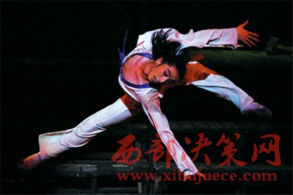 愛情是人類藝術(shù)永恒的主題。與西方的“羅密歐與朱麗葉”的愛情故事一樣,東方的“莫高和月牙”的愛情傳說同樣凄楚動(dòng)人。來自中國蘭州歌舞劇院的舞劇《大夢(mèng)敦煌》,就講述了一個(gè)感人泣下的愛情故事:女扮男裝的少年將軍月牙愛上了來自中原的畫師莫高,但遭到了大將軍的反對(duì)。月牙為保護(hù)莫高付出了生命的代價(jià),化為月牙泉;莫高以泉潤筆,完成了藝術(shù)絕唱。