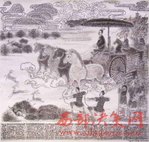 “永不滿足是前進(jìn)的動力”。為了更直觀地表達(dá)石鼓文,他發(fā)揮自己書畫的藝術(shù)天賦,潛心研究,又創(chuàng)作出了十幅《石鼓文圖》。它以中國傳統(tǒng)繪畫形式每幅畫于八尺宣紙,各件既是單幅作品,又互相關(guān)聯(lián),洋洋巨著,連接在一起近乎三丈,氣勢恢弘,再現(xiàn)了十面石鼓的原始?xì)v史景象,再現(xiàn)了先秦時期政治、軍事和民眾生活、飛禽走獸和自然風(fēng)光。對人們了解、研究先秦歷史必將產(chǎn)生積極的輔助作用。