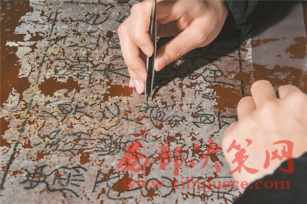 修復(fù)師經(jīng)仔細(xì)揣摩,用最接近古拓片原本的墨色來(lái)修復(fù)殘損部分。