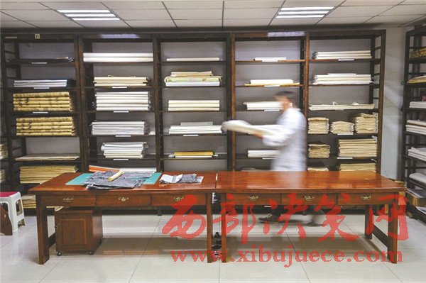 工作室存儲(chǔ)了各類(lèi)紙張,修復(fù)使用的補(bǔ)紙要與古籍書(shū)頁(yè)的紙質(zhì)、厚薄、顏色相同或相近。
