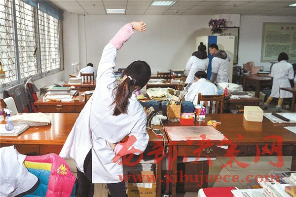 古籍修復(fù)工作現(xiàn)在仍是冷門(mén)行業(yè),修復(fù)師們頭上頂著“大國(guó)工匠”的光環(huán),背后卻有很多的艱辛。古書(shū)拆裝過(guò)程中會(huì)遇到大量陳年的灰塵、蟲(chóng)卵等,打噴嚏、犯鼻炎、過(guò)敏等現(xiàn)象時(shí)有發(fā)生;保持伏案姿勢(shì)一整天,幾乎所有的修復(fù)師都有頸椎和腰椎疾病。而古籍修復(fù)從業(yè)人員的待遇并不高,對(duì)年輕人缺乏吸引力。每年會(huì)有許多實(shí)習(xí)生來(lái)到中心實(shí)習(xí),但實(shí)習(xí)結(jié)束,不少學(xué)生就離開(kāi)這個(gè)行業(yè),能夠留下來(lái)的,寥寥無(wú)幾,更多人把它當(dāng)作副業(yè)或者興趣愛(ài)好。