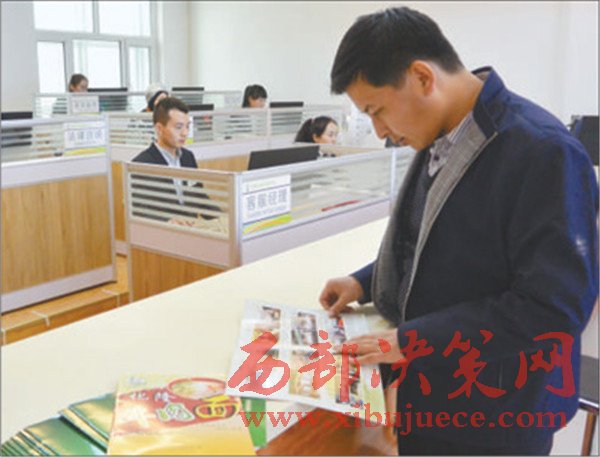 馬青云(右一)在拉面電商平臺(tái)查閱資料。