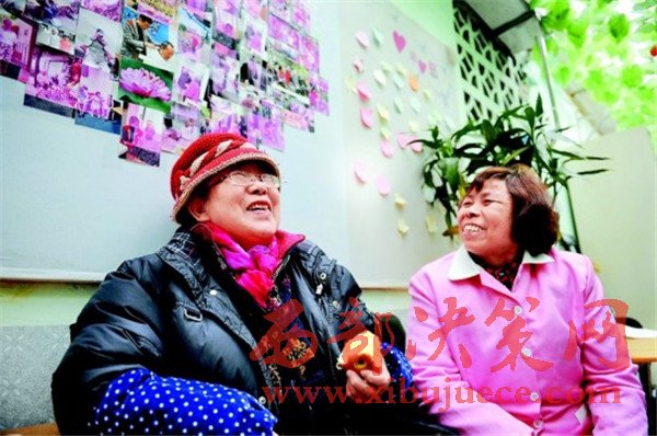 78歲的文周碧老人(左)在服務中心感受到家的溫暖。