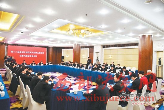 每日甘肅網北京3月9日電 (甘肅日報記者呂寶林 尤婷婷)十二屆全國人大五次會議甘肅代表團今天在駐地舉行全體會議和分組會議,審議張德江委員長所作的全國人大常委會工作報告。代表們認為,報告總結成績實事求是,分析問題深刻透徹,部署工作重點突出,站位高、工作實、亮點多,具有很強的思想性、針對性和指導性,是高舉旗幟、主題鮮明、舉措有力、成效顯著的好報告。