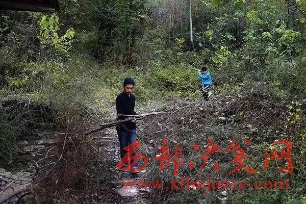 今年春節(jié)過后,張榮海就跟著村里人去了吉林長春打工,東北零下幾十度,凍得他實在受不了,每天跟著師傅學刮膩子,活很累,他力氣又小,加上粉塵太大,只干了五六個月,又跑到河北張家口去了,前后打工半年多,工錢都讓師傅領(lǐng)走了,只帶回家1600多塊。本打算多干幾個月,可弟弟要上學,平時吃住在繼父家,弟弟不愿待在“別人”家,所以他就跑回來照顧弟弟。進入冬季,山里人離不開火爐。這天弟弟放學回來,哥倆一起上山砍柴,為過冬做準備。