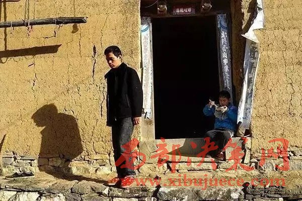 湖北省鄖西縣湖北口鄉(xiāng)東川村,陽光下的哥哥張榮海和弟弟陳廣新偎依著,身后是父母去世后留下的三間破舊的土坯房。