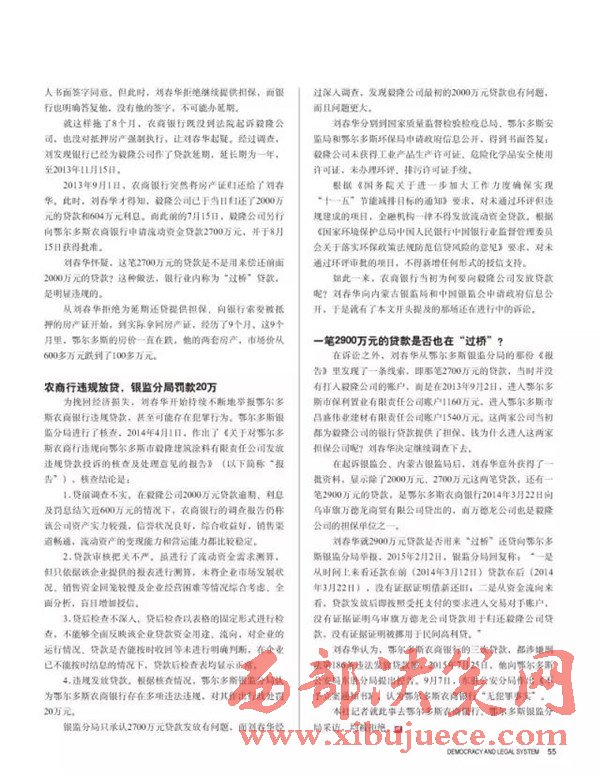 2、在內(nèi)蒙古自治區(qū)紀(jì)委監(jiān)督之下內(nèi)蒙古銀監(jiān)局查出鄂爾多斯農(nóng)商銀行發(fā)放的2000萬(wàn)、2700萬(wàn)、2900萬(wàn)三筆貸款屬于違規(guī)貸款;