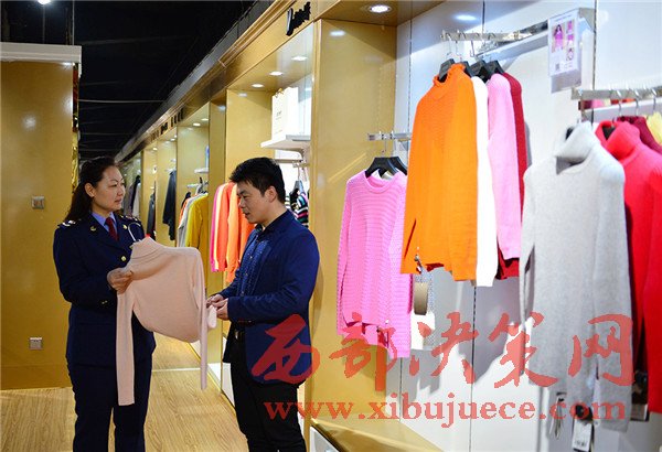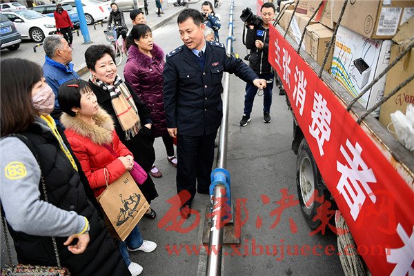 3月14日,銀川市市場監(jiān)督管理局工作人員向市民介紹假冒偽劣商品的危害和辨識方法。