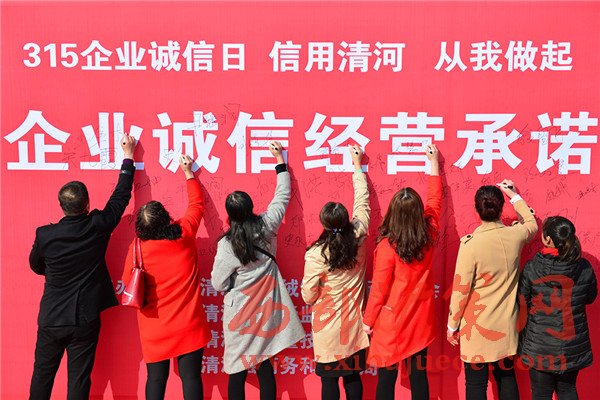 3月14日,河北省清河縣網(wǎng)店經(jīng)營者在“3·15誠信墻”上簽名。